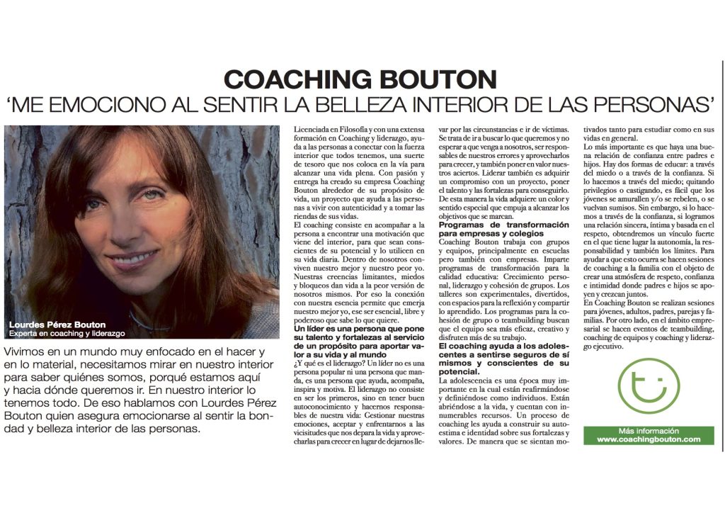 La vuelta al colegio tras el descanso estival puede suponer un motivo de angustia para muchos niños y adolescentes que el coaching puede ayudar a resolver. De eso hemos hablado con Lourdes Pérez Bouton, responsable de Coaching Bouton. ¿Cuáles son las causas de que los adolescentes no se sientan bien en el colegio? Los niños […]